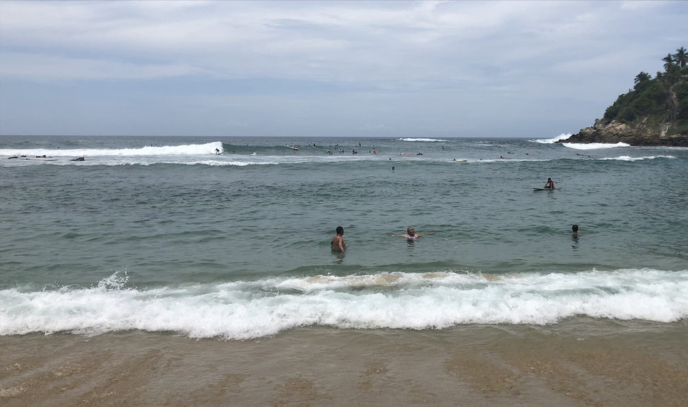 Once one of us was staged, Ernesto had us focus on our destination; looking forward where we wanted to go. Ernesto, holding the back of the board, focused on the approaching waves and the surfers behind us. He’d announce when a wave of interest was approaching and then say “paddle, paddle, paddle!”.